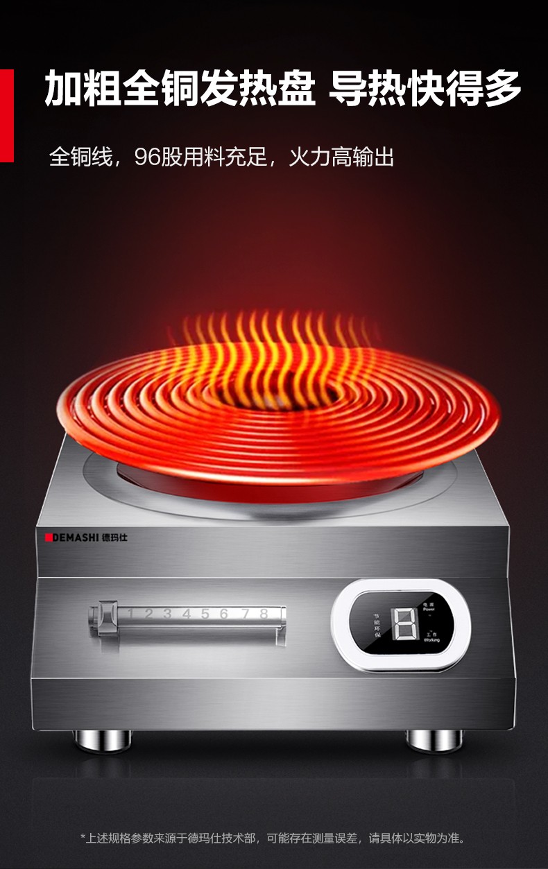 德玛仕(DEMASHI)电磁炉大功率商用6000W 凹面电磁炉爆炒6000瓦磁控电磁灶 电池炉不锈钢 IH-TC-6000W